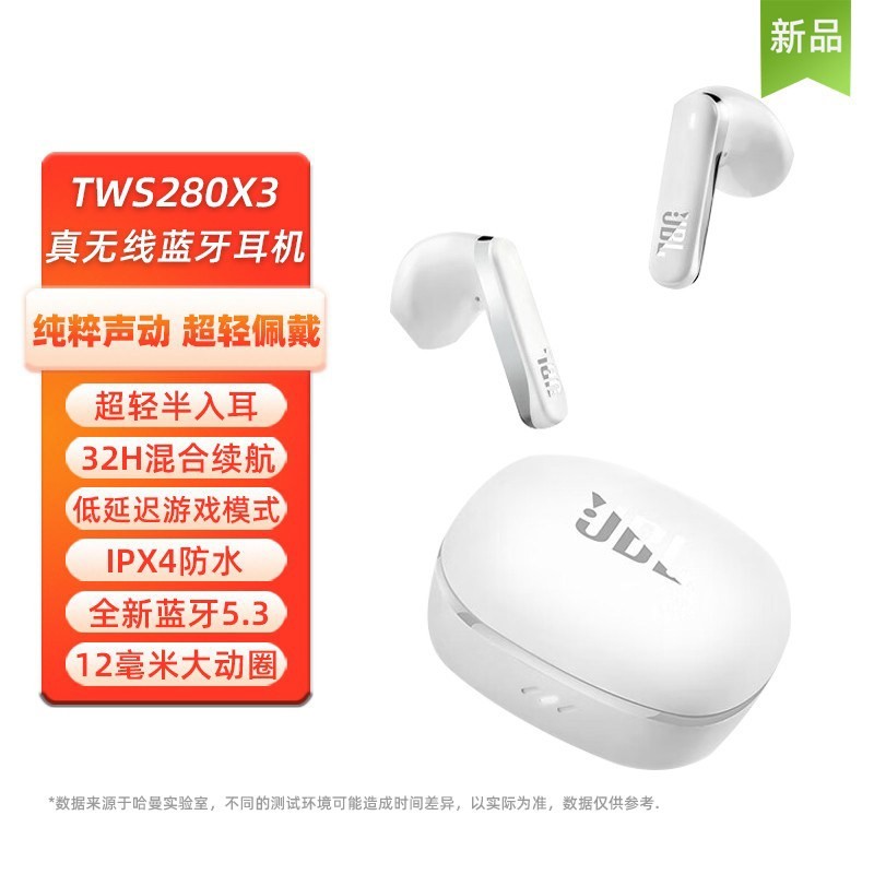 JBL T280TWS X3真无线蓝牙耳机,官方标配珍珠白款式,具备通话降噪功能。