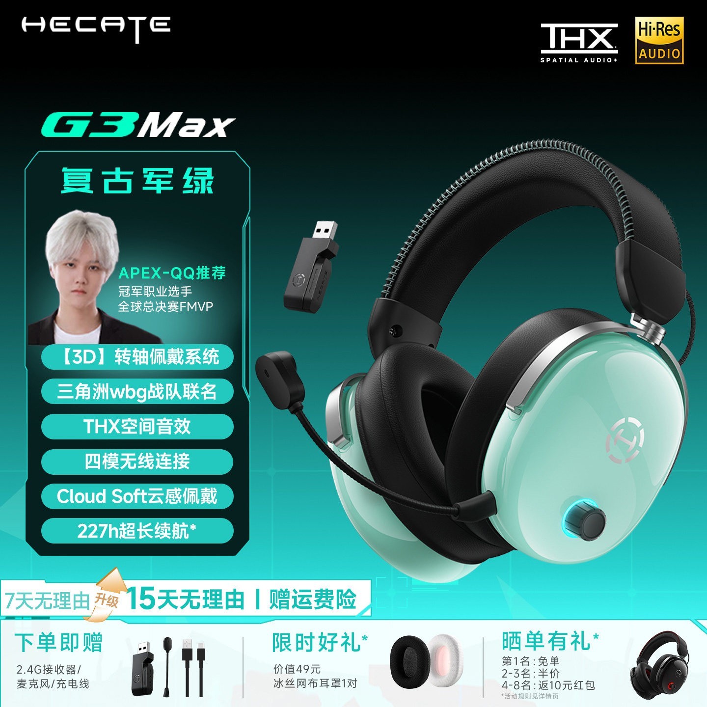 漫步者HECATE G3 MAX无线版头戴式蓝牙耳机,是电竞游戏专用耳麦。它采用三角洲设计,拥有出色的外观造型。