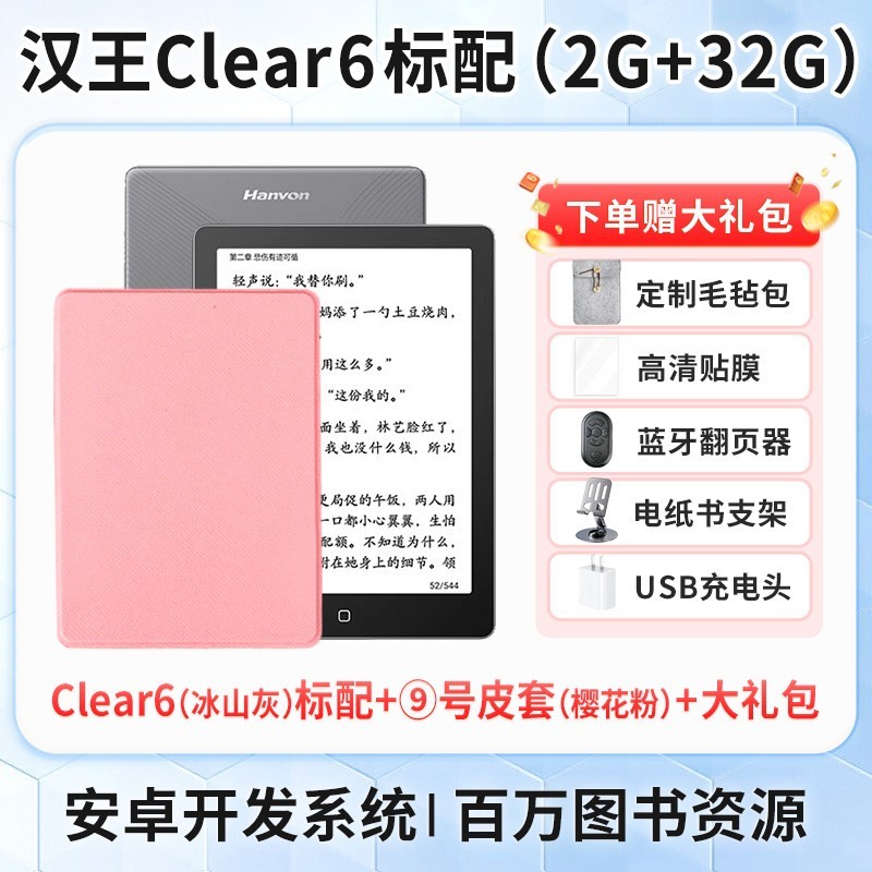 汉王电纸书Clear6电子墨水屏阅读器,6英寸高清电子墨水屏,64GB大容量存储,专为深度阅读设计,搭载护眼水墨屏技术,长时间阅读不伤眼,支持番茄小说、微信读书等主流阅读平台,轻薄便携,续航持久,是学生、上班族和纸质书爱好者的理想选择。目前天猫精选活动售价1199元...