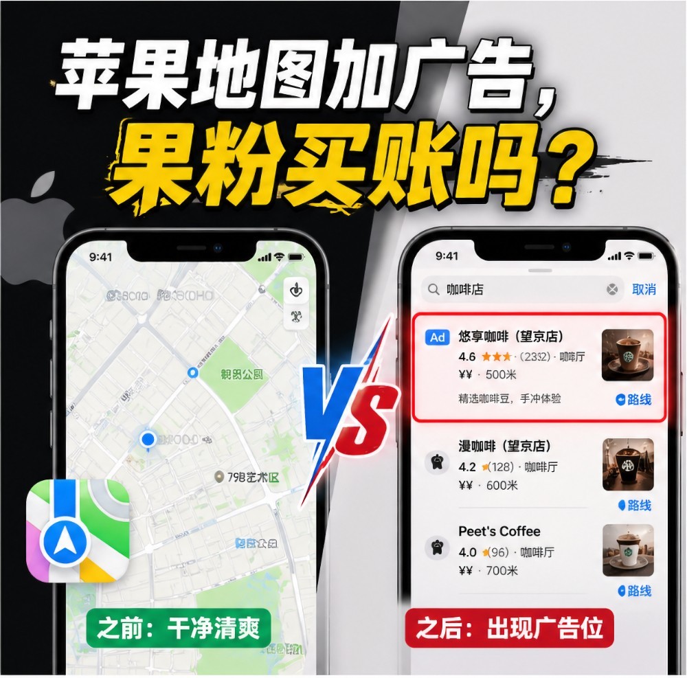 但问题在于,这件事的争议核心,从来不只是“隐私”。而是用户体验与品牌预期的落差。对于不少用户来说,苹果地图的一个重要价值恰恰是“干净”,甚至有人直言,如果地图也开始商业化,那与百度、高德的差异将被进一步抹平。