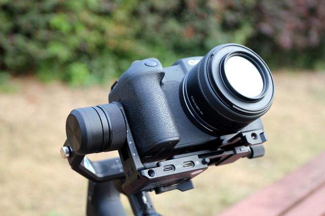 M是模式按键,单击切换航向跟随/全锁定,双击双轴跟随,三击全域跟随,即使没有屏幕也可以通过按键进行快速切换,很方便。还有一颗就是拍照按键了,支持半按快门,全按拍摄或者录像,当然,这需要连接手机或者相机使用。