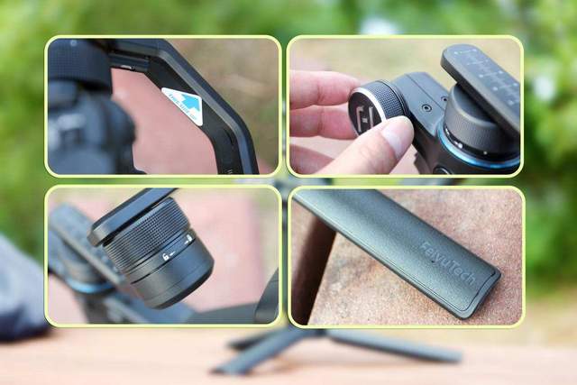 飞宇蝎子Mini稳定器之所以这么轻便,也主要源于在材质方面的选择,除了航空铝材质之外,还有高分子合成树脂联合打造而成,保证稳固的同时也减轻了总量。另外,整体黑色的配色相当专业。