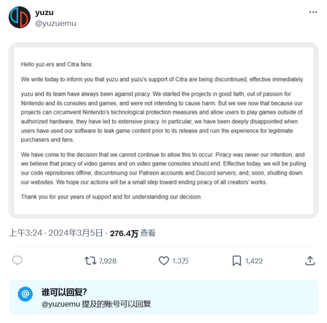 任天堂起诉模拟器Yuzu 开发公司妥协支付1700万人民币