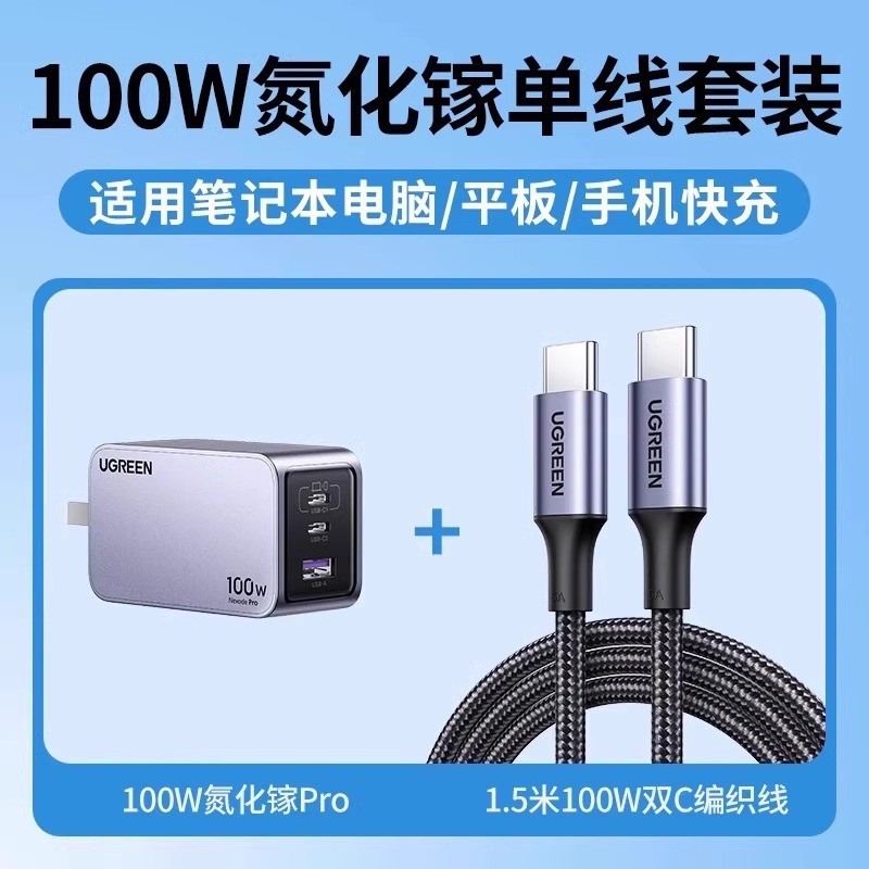绿联 100W 氮化镓 Pro 充电器头,支持 USB-C PD 快充协议