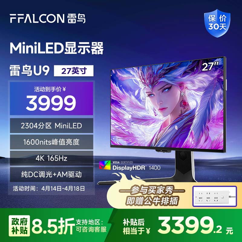 本文属于原创文章,如若转载,请注明来源:TCL雷鸟U9 27英寸4K 165Hz显示器到手价3195元https://dcdv.zol.com.cn/974/9743401.html