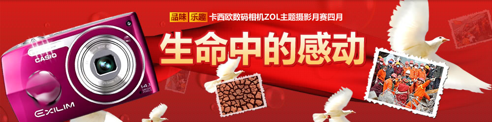 | 四月月赛主题“生命中的感动”,经过全民投票和卡西欧公司及资深摄影专家的综合评定,最终选出了获奖作品,这次参赛的作品很多 ,共有90副作品符合参赛要求,用照片展现了精彩的瞬间。此次拍摄中又涌现出一大批非常不错的作品,有些作品真的是难取难舍,经过慎重的筛选,最终确定了获奖名单,同样对那些参赛作品不错的网友表式祝贺 ,希望下次月赛可以看到大家更精彩的作品,名次并不重要,重要的是对摄影的执着和热爱! ...【详细】 |